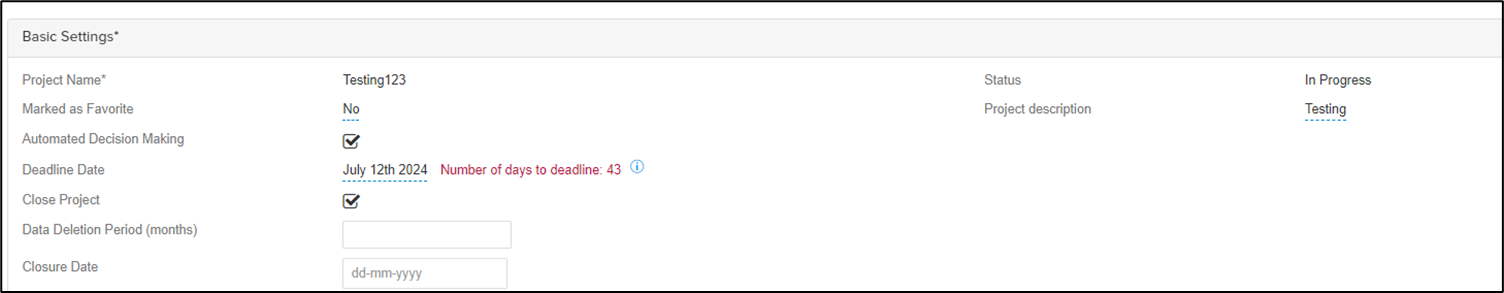 There are two ways to set up a deadline date when creating a project. You can choose your preferred deadline date or you can set the days for completion after the candidate first registers on the system. Both can be done at project-level or candidate-level.