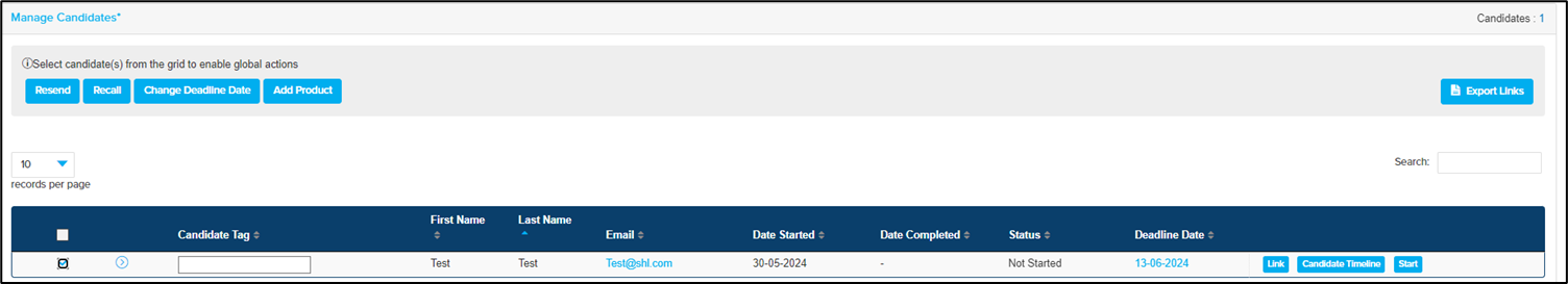 Once it has been turned on you will be able to add the candidate to the project again using their name and email address to create a new test link. Multiple Use links cannot be used to retest a candidate within the same project, which is why the candidate must be added to the project again individually.
